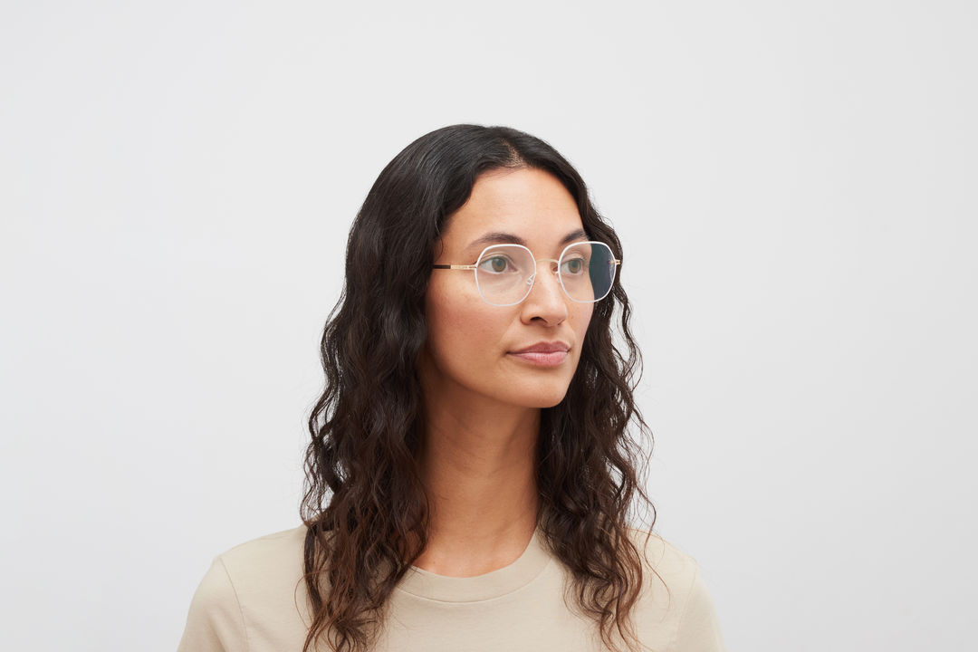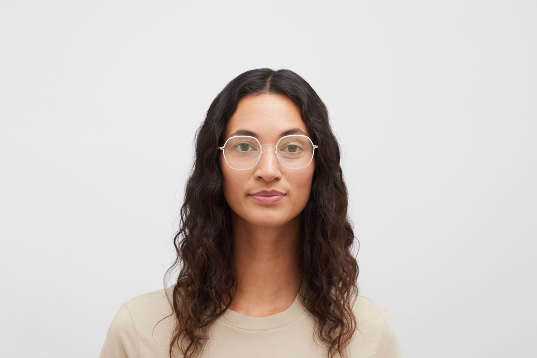 Das Model trägt KARI in der Farbe Champagne Gold/Aurore.
