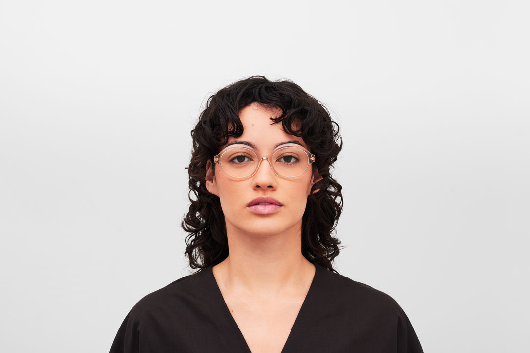 Das Model trägt NOOMI in der Farbe C206 Desert Haze/Glossy Gold.