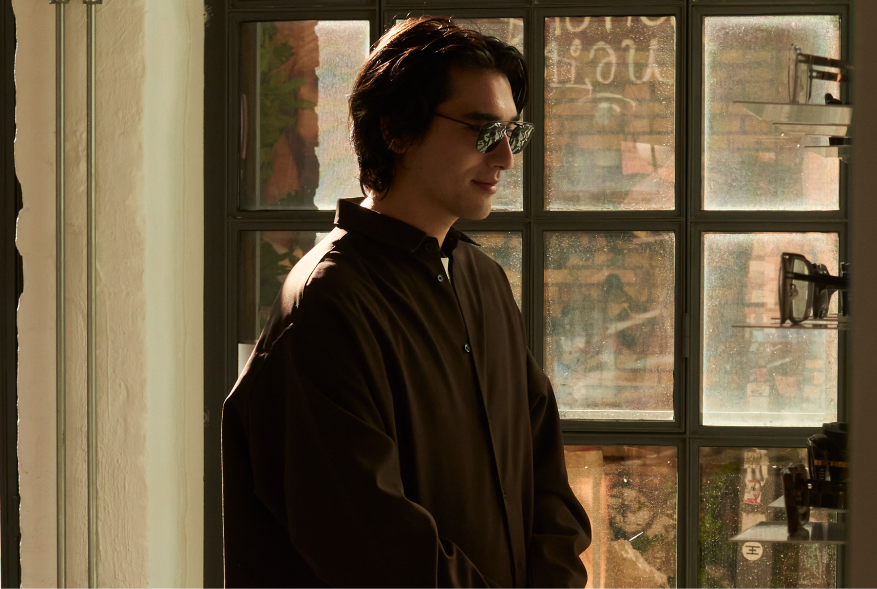 The eyewear aficionado trying out the latest arrivals in the MYKITA HAUS showroom.