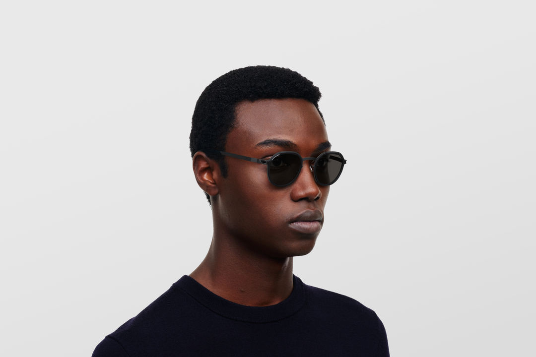 Das Model trägt MR001 in der Farbe AL4 Black/Black mit Black Polarized Gläsern.