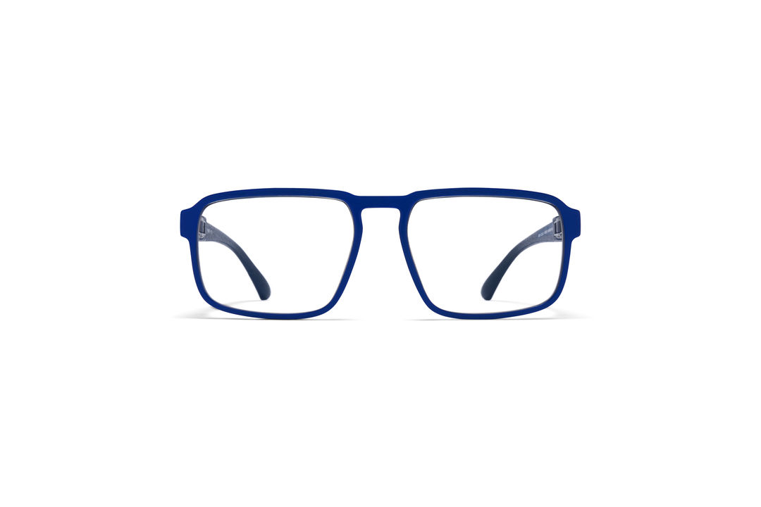 VOYAGER in der Farbe MDL3 Navy Blue/International Blue mit Clear Gläsern aus der MYKITA MYLON Kollektion ist eine eckige Korrekturbrille aus MYLON, das extrem leicht und stark belastbar ist. Handgefertigt in Berlin.