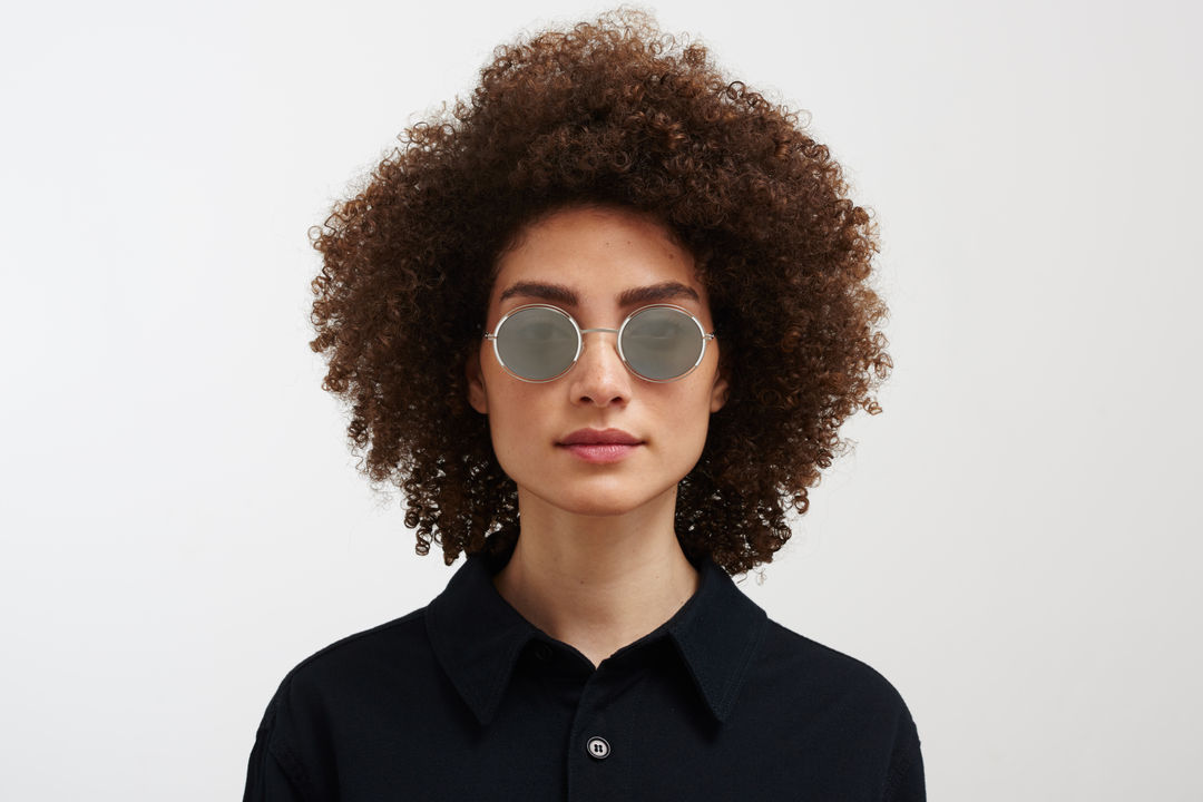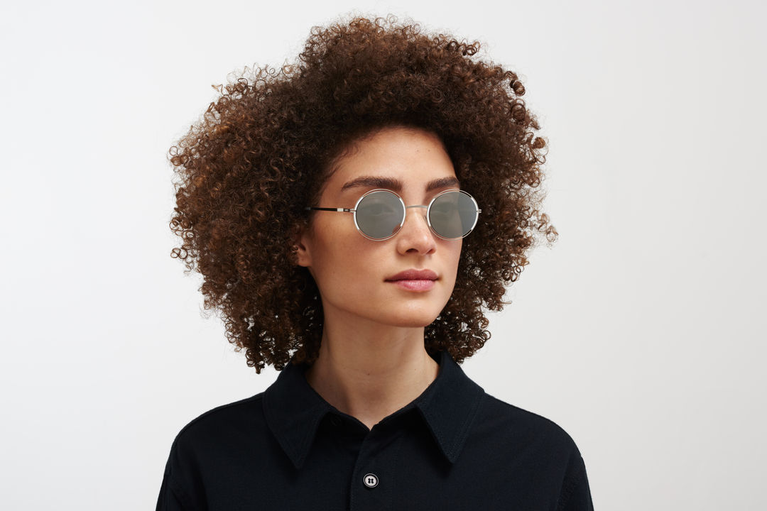 Made of lightweight stainless steel, GISELLE in Silver White with Silver Flash lenses is a oval shaped sunglass frame from the MYKITA DECADES collection with a geometric rim design. Handcrafted in Berlin.