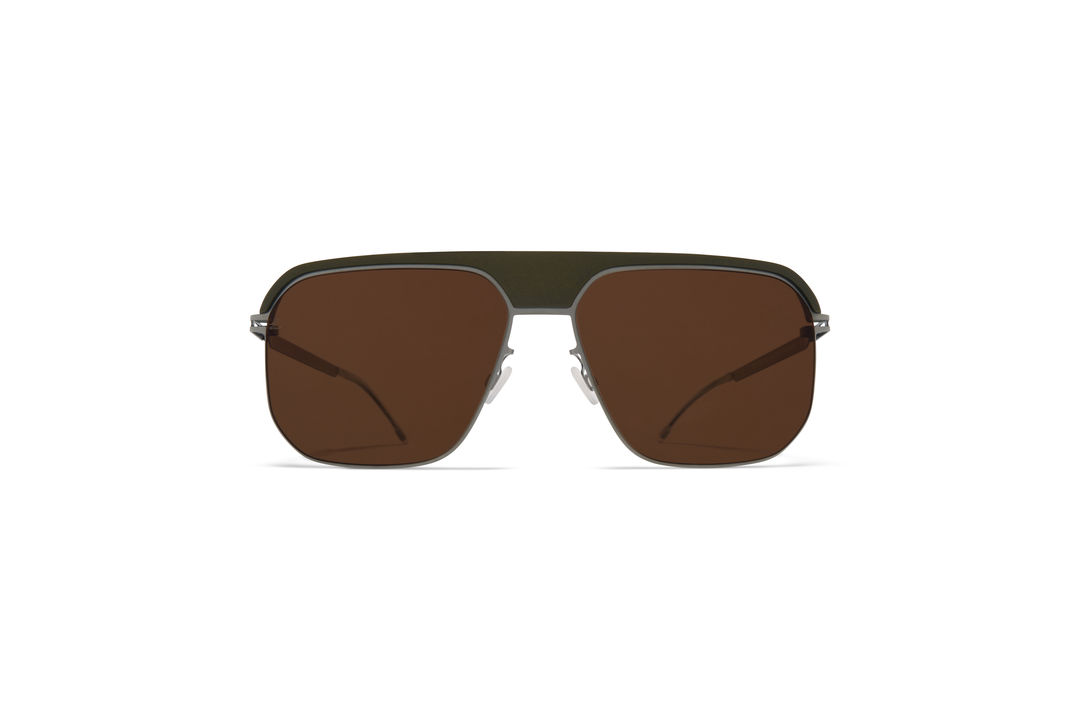 Made of lightweight stainless steel with a MYLON top bar, ML06 in MH51 Safari Green/Graphite with Leica Brown Polarised lenses is a square shaped sunglass frame from the MYKITA | LEICA collection. Handcrafted in Berlin.