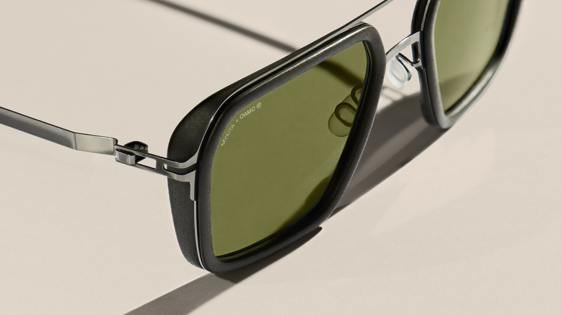 Advanced design grounded in utility and technical precision. MYKITA + OAMC® is a collaborative eyewear capsule bringing together MYKITA’s engineering expertise and OAMC®’s functional design language. Mid-century eyewear reinterpreted through contemporary materials and high-performance construction.These hybrid frames combine lightweight stainless steel with MYLON® inserts, and integrated side shields for enhanced visual comfort. MYKITA + OAMC® sunglasses reflect a shared commitment to craftsmanship, durability, and purposeful design.