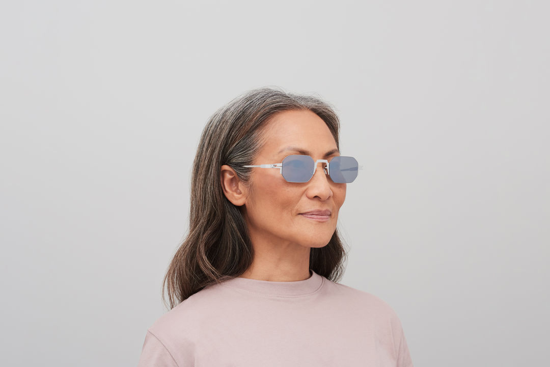 These STUDIO 15 sunglasses takes the ultra-minimalist construction of LESSRIM and pushes it into graphic territory. Ultra-fine stainless steel rims disappear into the lens groove, allowing structural elements like the nose bridge and side pieces to emerge as deliberate, standout features. Handmade at MYKITA HAUS in Berlin.