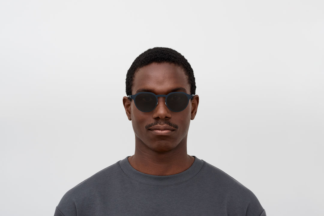 The model wears LEON in colourway Indigo.