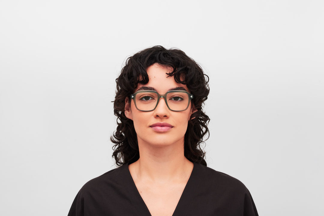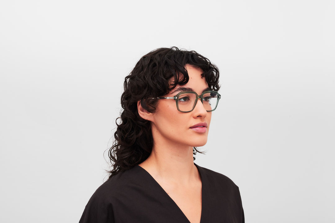 The model wears MABEL in colourway C191-Cypress Green/ShinySilver.