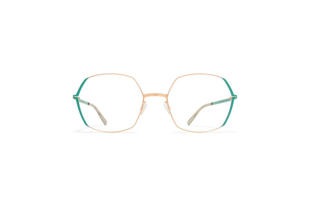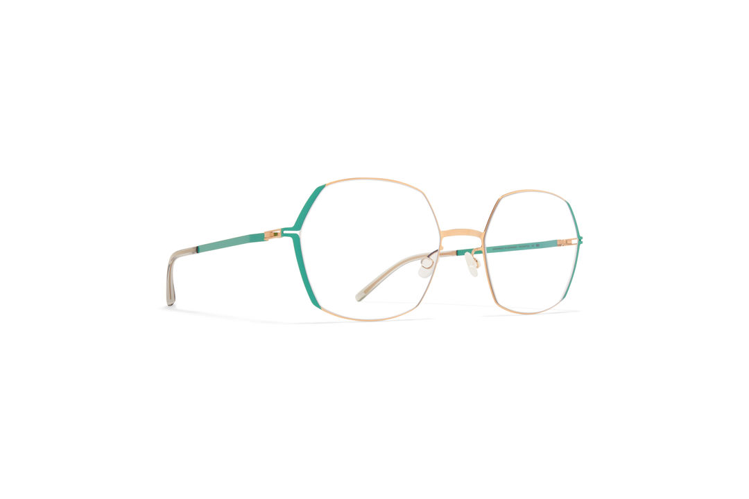 Made of lightweight stainless steel and slender acetate, MAJVI in Champagne Gold/Jade Green with Clear lenses is a square shaped optical frame from the MYKITA LITE ACETATE collection. Handcrafted in Berlin.
