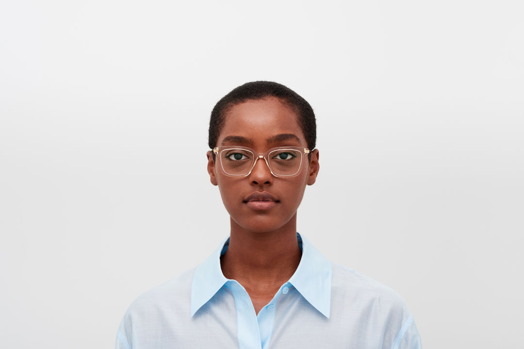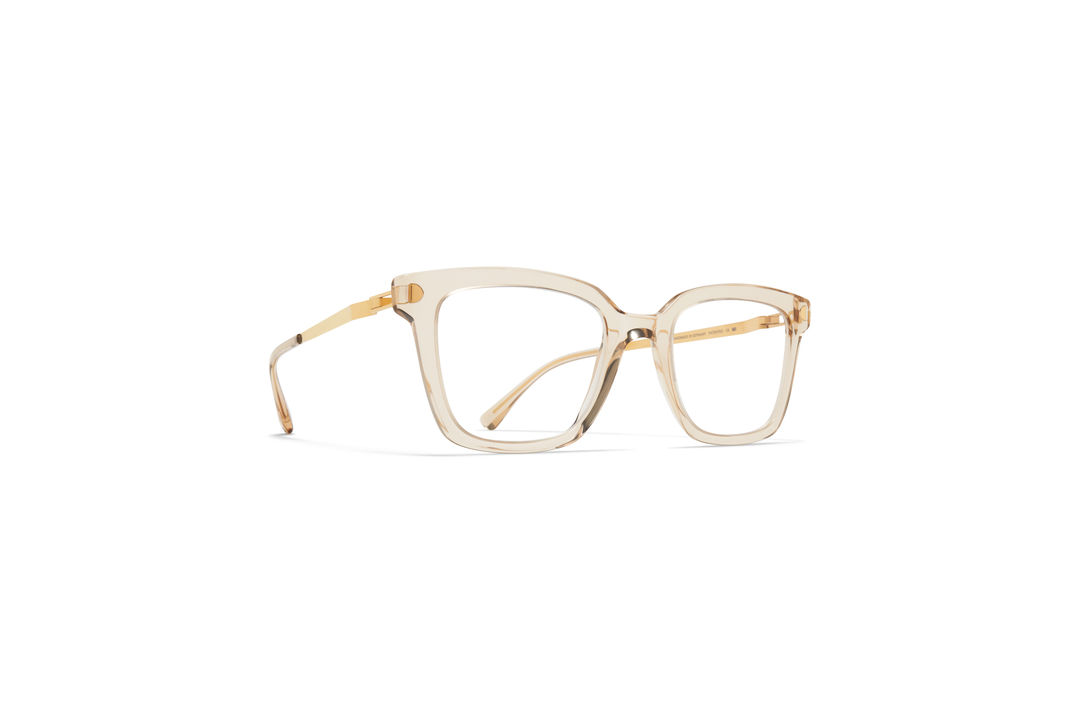 The model wears NEALE in colourway C206-Desert Haze/Glossy Gold.