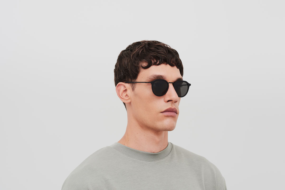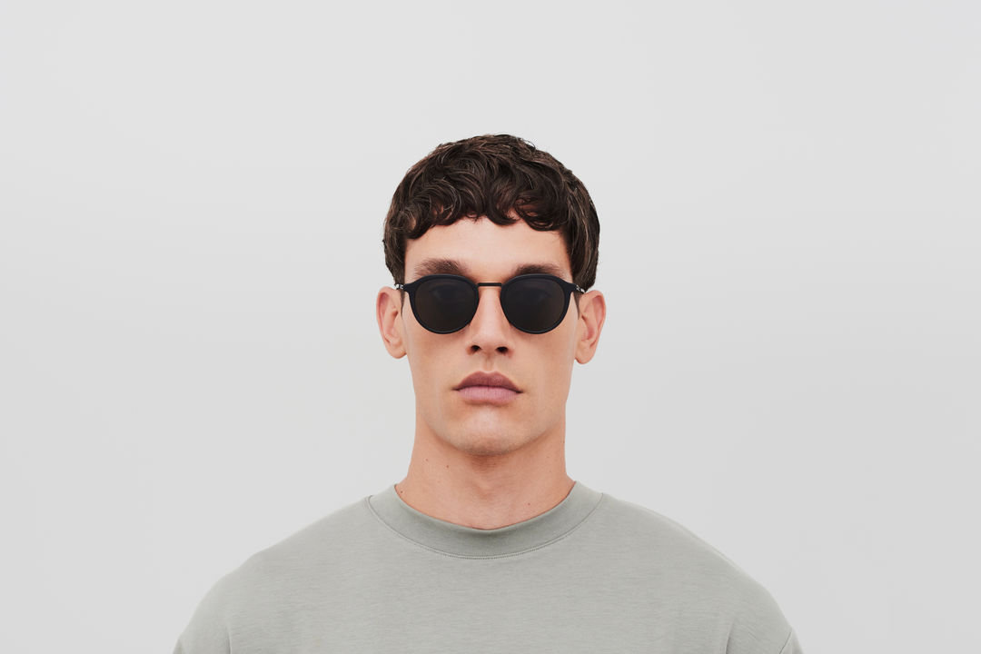 Made of lightweight stainless steel with acetate rims, PAULSON in A57 Black/Matte Black with Dark Grey Solid lenses is a panto shaped sunglass frame from the MYKITA LITE ACETATE collection. Handcrafted in Berlin.